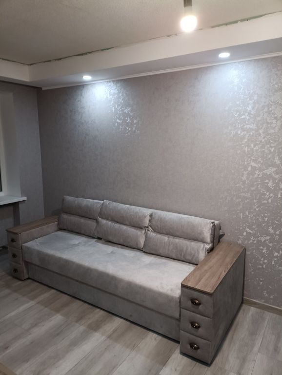 Диван имеет встроенный короб для белья. В одной из боковин имеются 3-и выдвижных ящика.