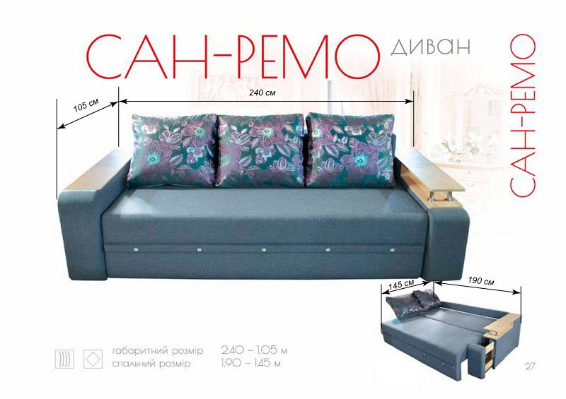 Размеры дивана Сан-Ремо