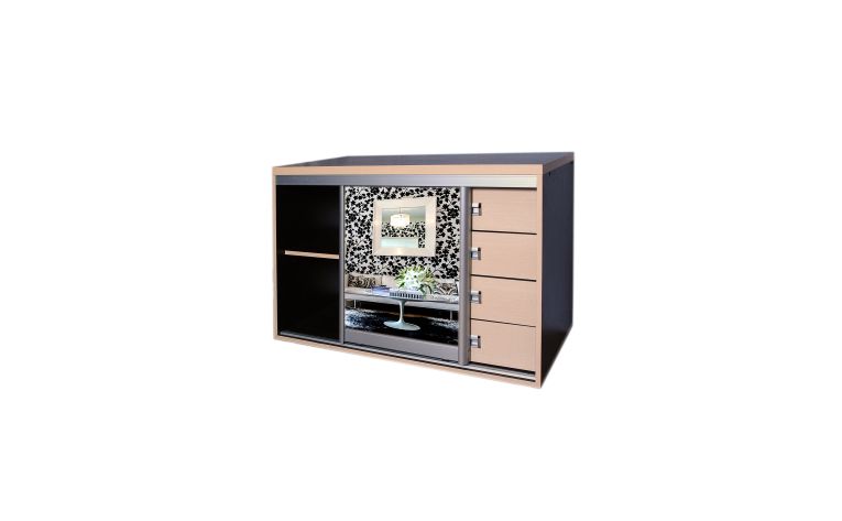 Комод Грация new.Габаритные размеры:ширина - 1000 ммвысота - 800 ммглубина - 500 ммкорпус - ДСПфасад - зеркалоНаполнение:4 ящика на роликовых направляющих,и одна полка в отделении.