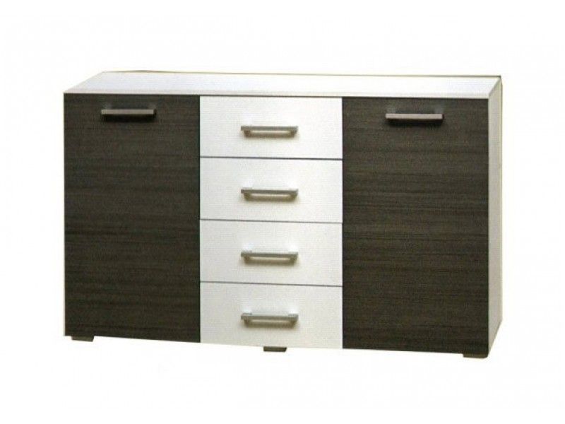 Комод имеет 4-е выдвижных ящика и два отделения с полкой