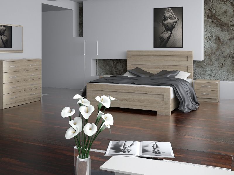 Изголовье и изножье кровати выполнены из плиты МДФ (32 мм).
