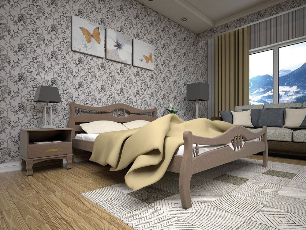 Деревянная кровать из натурального материала.