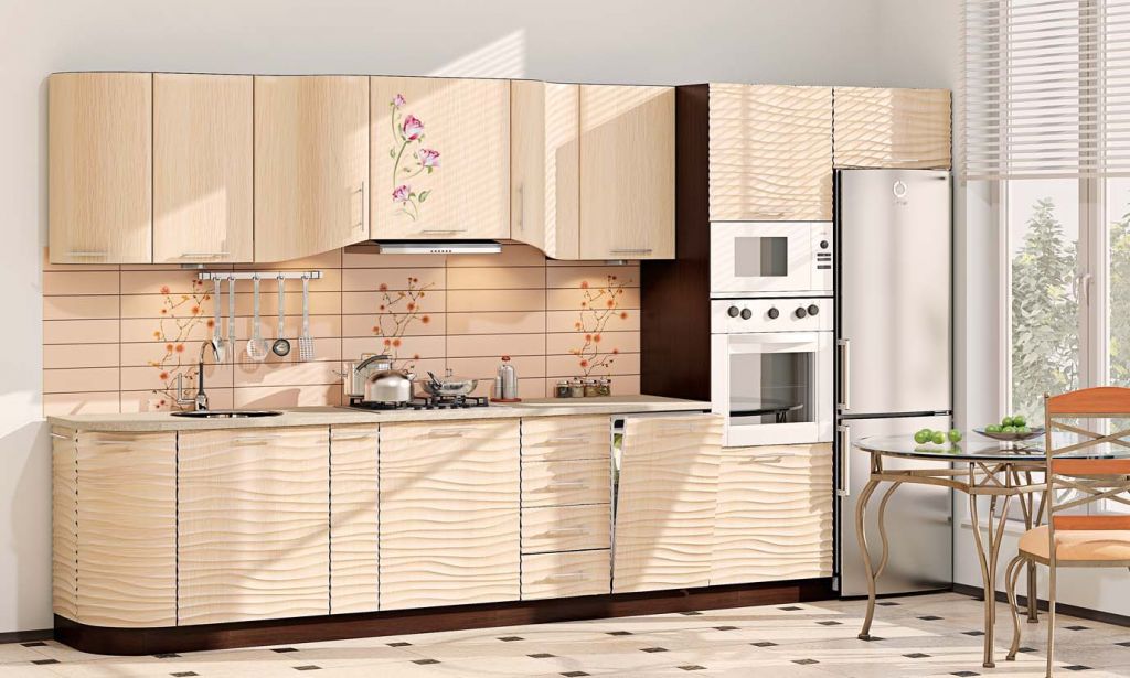 Кухня КХ-193Размеры: высота: 2140 мм ширина: 3780 ммглубина: 600 ммМатериал: корпуса: ламинированый ДСП фасада: МДФЦветная гамма: дуб молочный с печатью, дуб натуральный с печатью, дуб молочный, дубГарантия качества: 18 месяцев