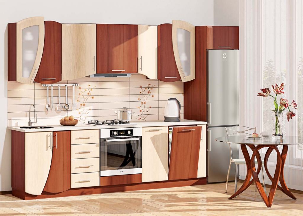 Кухня КХ-261Размеры:длина: 3230 ммвысота: 2140 ммглубина: 600 ммМатериал:корпуса: ламинированый ДСПфасада: МДФЦвет корпуса:орехЦвет столешницы: песок античныйЦвет фасада:орех/дуб молочныйСтолешница входит в комплект!