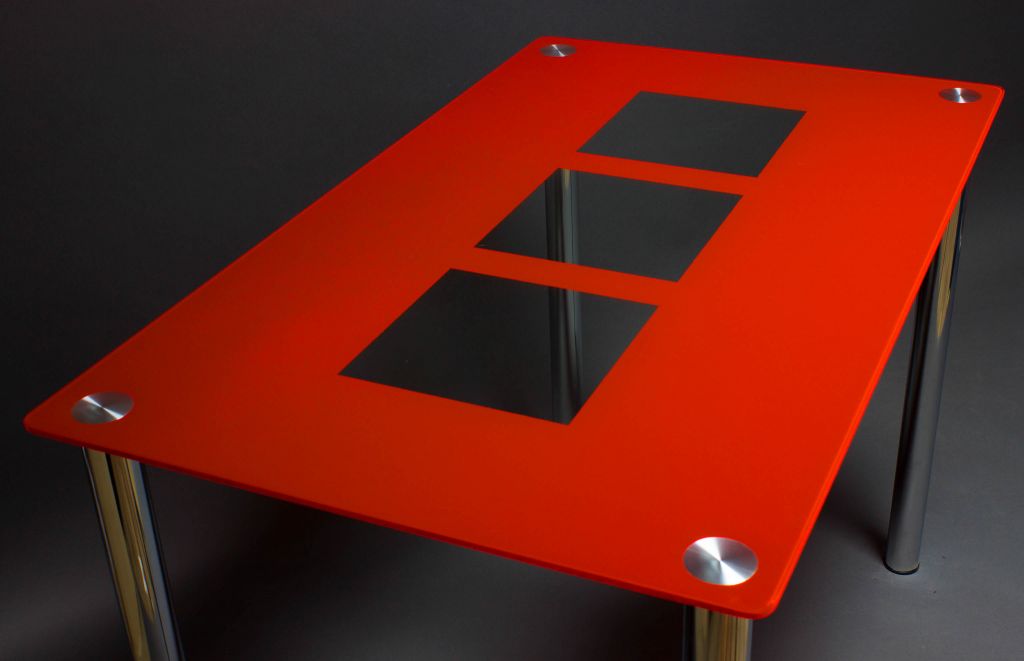 стеклянный, ножки- хром, крашеный рисунок, габариты 1100х650 мм