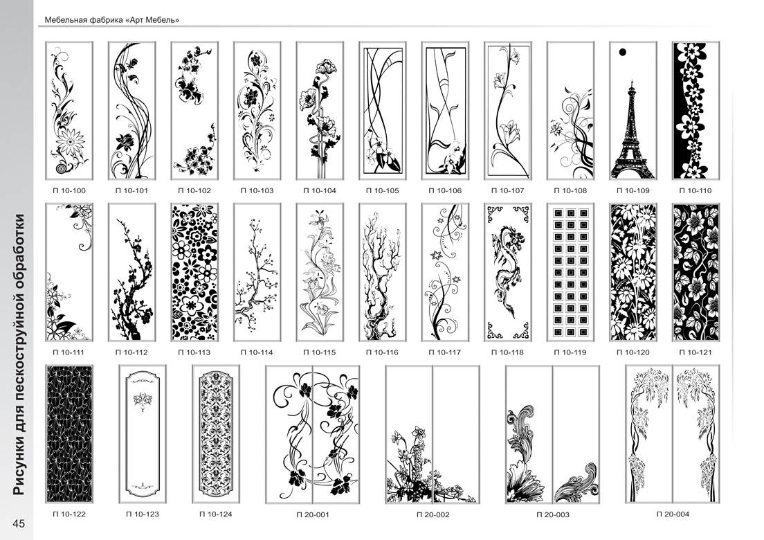 Образцы рисунков на зеркала для шкафа-купе фабрики АртМебель