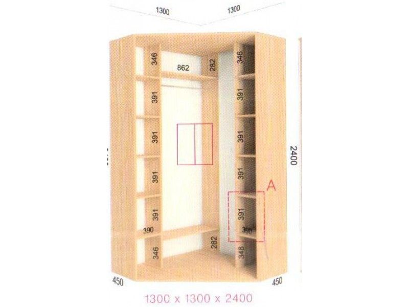 Шкаф купе угловой Феникс (1300-2400-450).