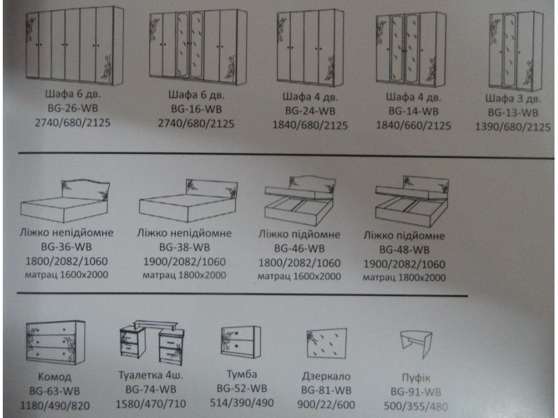 - кровать Ш:2082 х Г:1800 х В:1060 мм