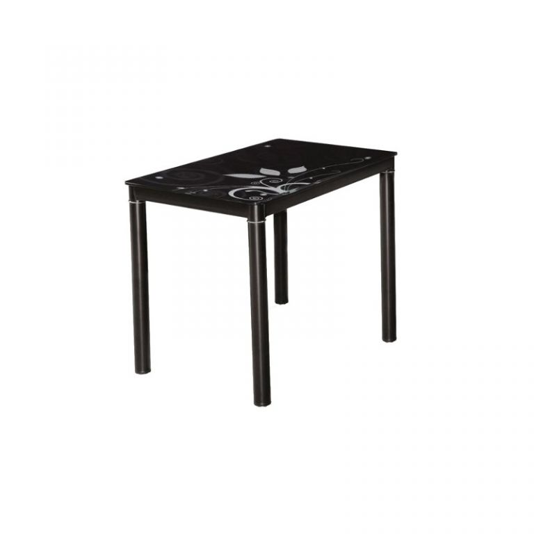 Стол Damar bleck в стиле модерн. Габаритные размеры: длина - 100 см ширина - 60 см высота - 75 см Материал: металл, калёное стекло Цвет:черный Варианты расцветок: кремовый, белый, чёрный, чёрно - белый, темно - бежевый, серый, чёрный/хром, кремовый/хром, белый/хром.