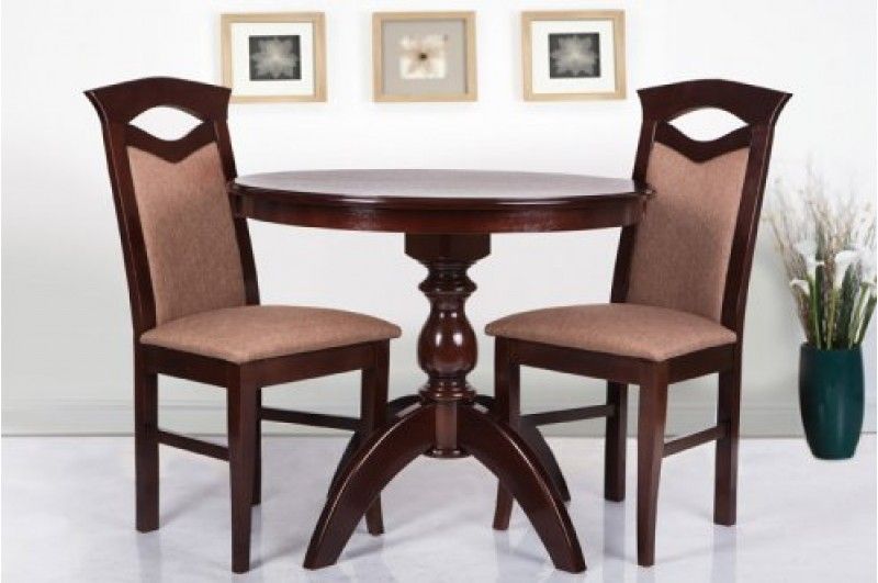 Вместительный обеденный стол компактных размеров в темном цвете.