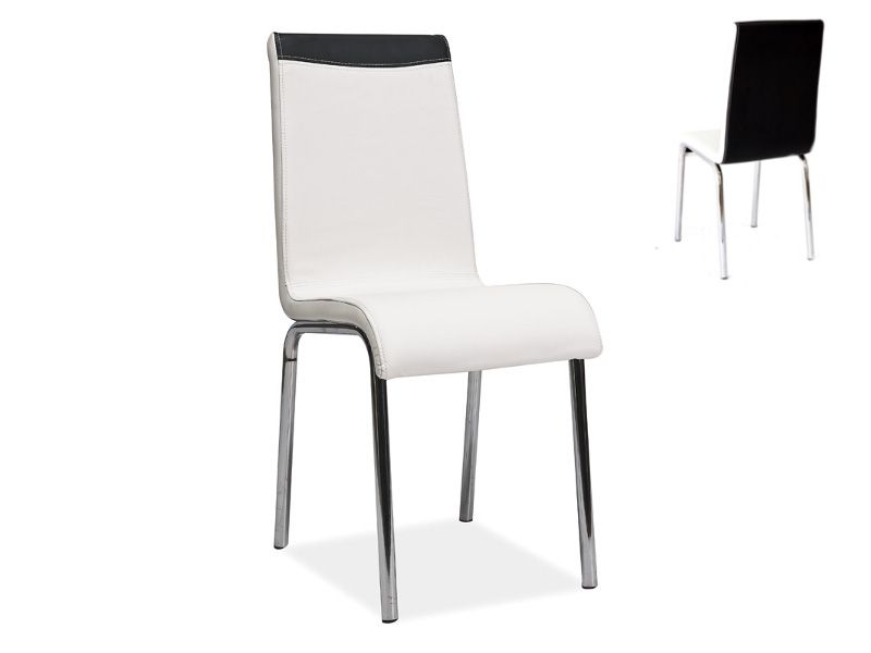 Стул H - 161 white от польского производителя. Габаритые размеры: Ширина - 40 см Глубина - 39 см Высота - 91 см Высота сиденья - 47 см Материал: металл/экокожа Цвет: экокожа - белый, черный , металл - хром Варианты расцветок: бело-чёрный, фиолетово-черный