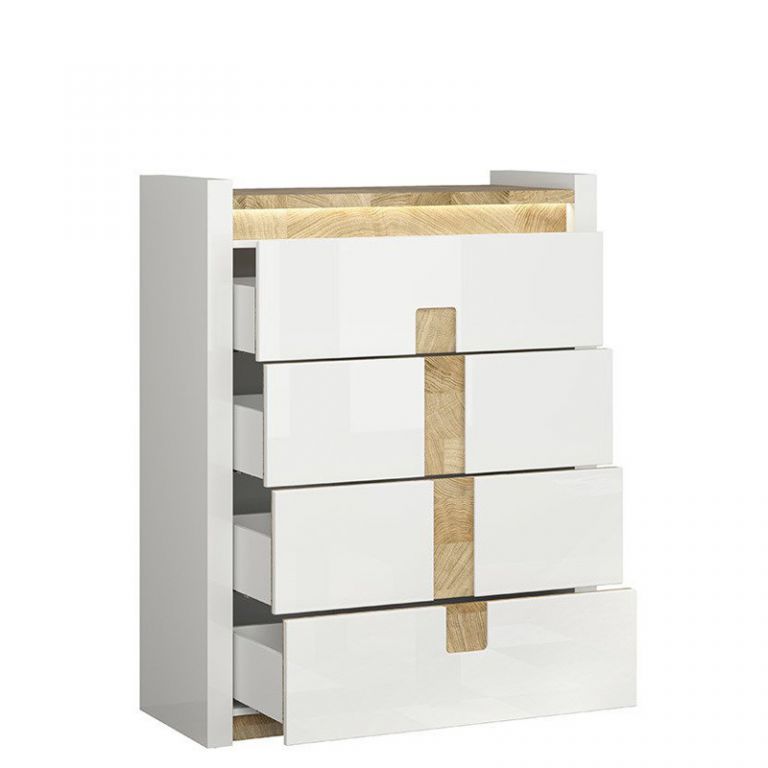 Комод KOM4S Аламеда БРВ содержит четыре выдвижных ящика.