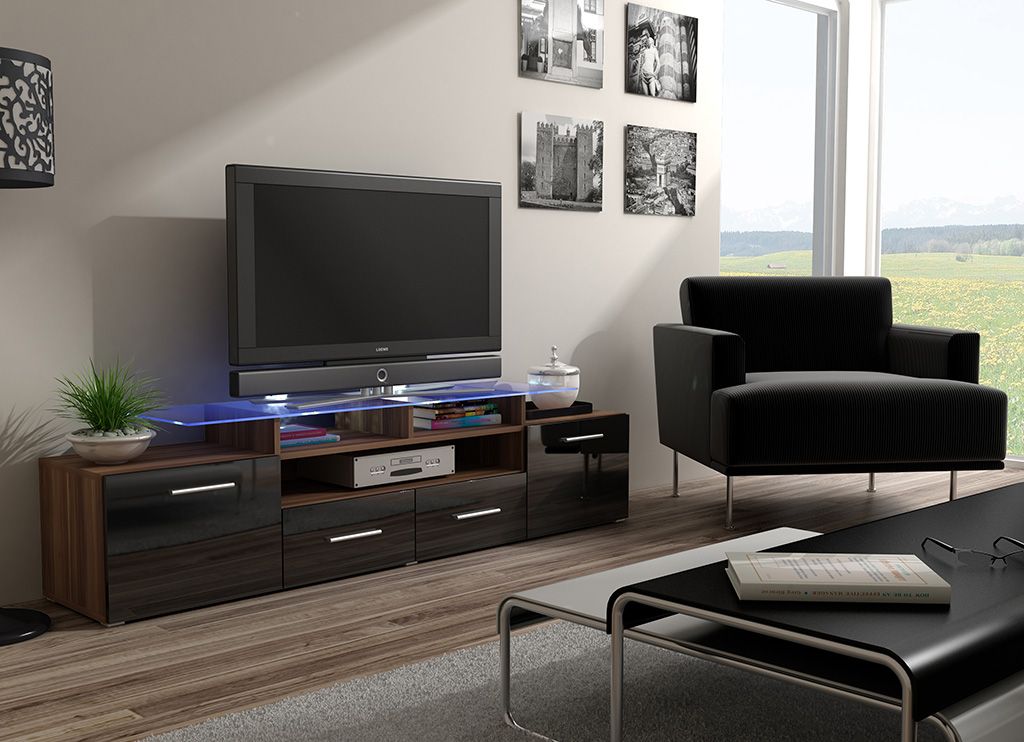 Тумба ТВ EVORA слива/черный глянец от польского производителя Cama