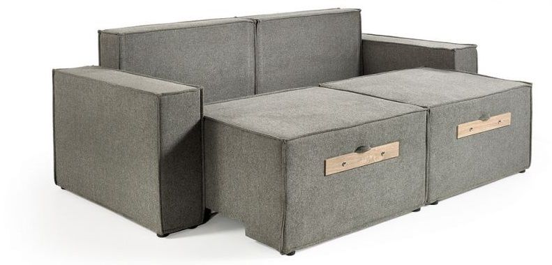Диван-трансформер. Вы можете выдвинуть одну из 2-х половинок вперед, опустить за ней спинку- и Вы получите угловой диван с двумя подушками. Угол можно получить как на правую, так и на левую сторону. Если обе половинки задвинуть в сидячее положение - получается 3-х местный прямой диван шириной 255 см. У данной модели довольно широкое спальное место ( 160 см)