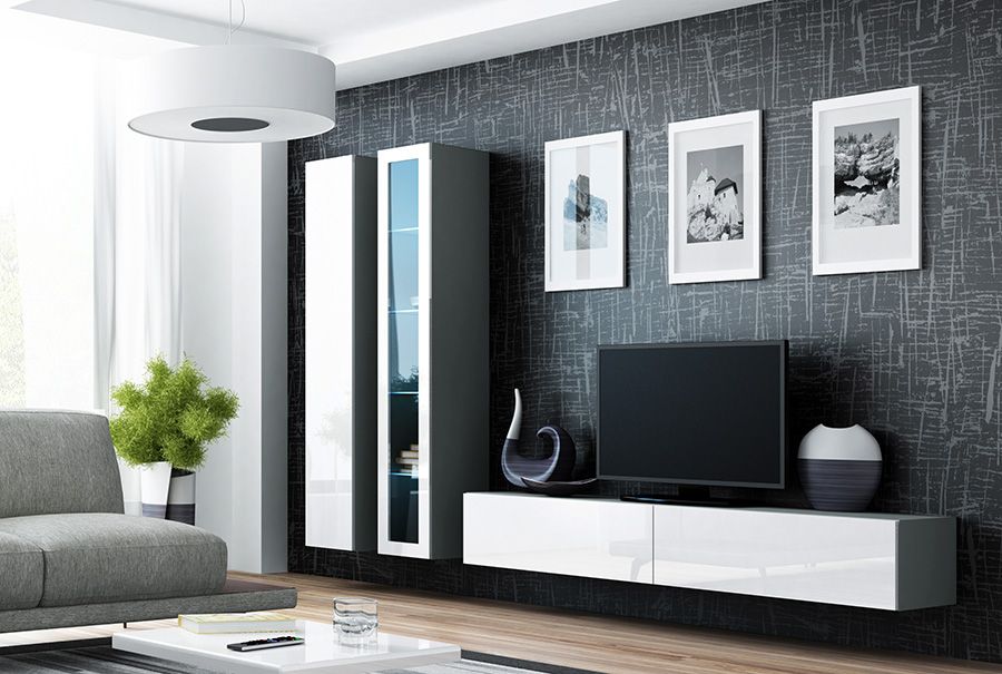 Витрина навесная VIGO серый/белый глянец от польского производителя Cama